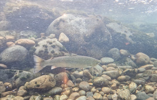Und Wildlachse gibt es auch, weil das Museum direkt am Fluss liegt und sie Glasfenster eingebaut haben.
