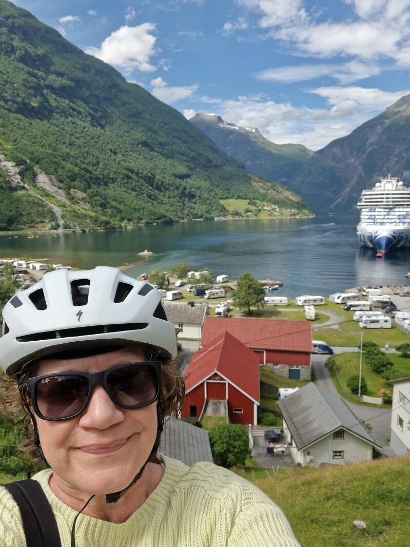 Eigentlich hatte ich vor, nur eine Nacht in Geiranger zu verbringen, aber es versprach, ein schöner, sonniger Tag zu werden; also habe ich gefragt, ob ich eine Nacht länger bleiben könnte. Auf die Frage, ob ich am gleichen Platz bleiben oder eventuell in die 1. Reihe am Wasser wechseln möchte, war die Antwort klar: natürlich ans Wasser!