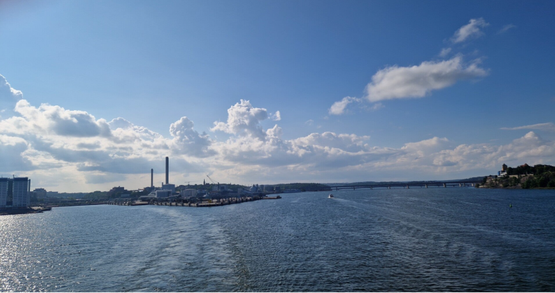 Hier zunächst ein paar Fotos von der Ausfahrt aus dem Hafen von Stockholm.